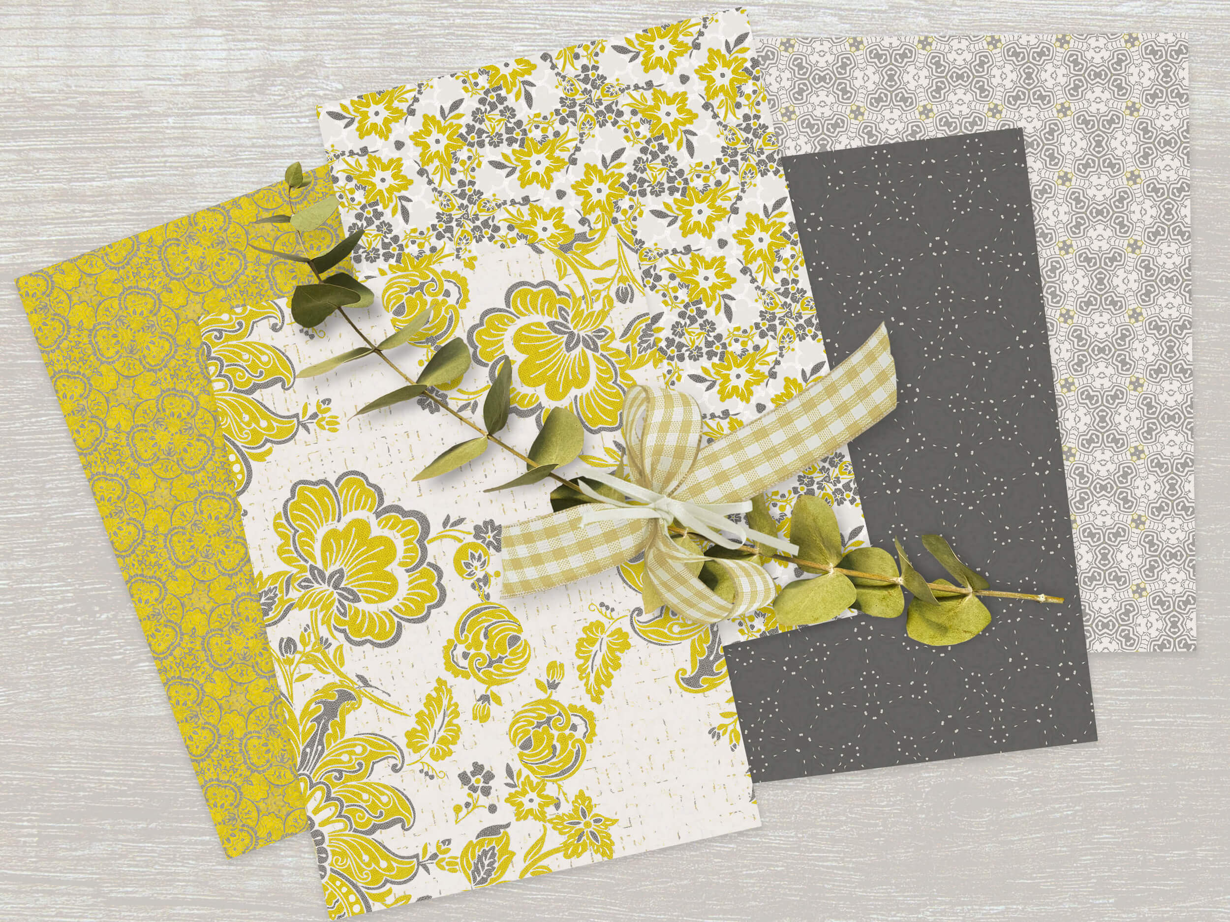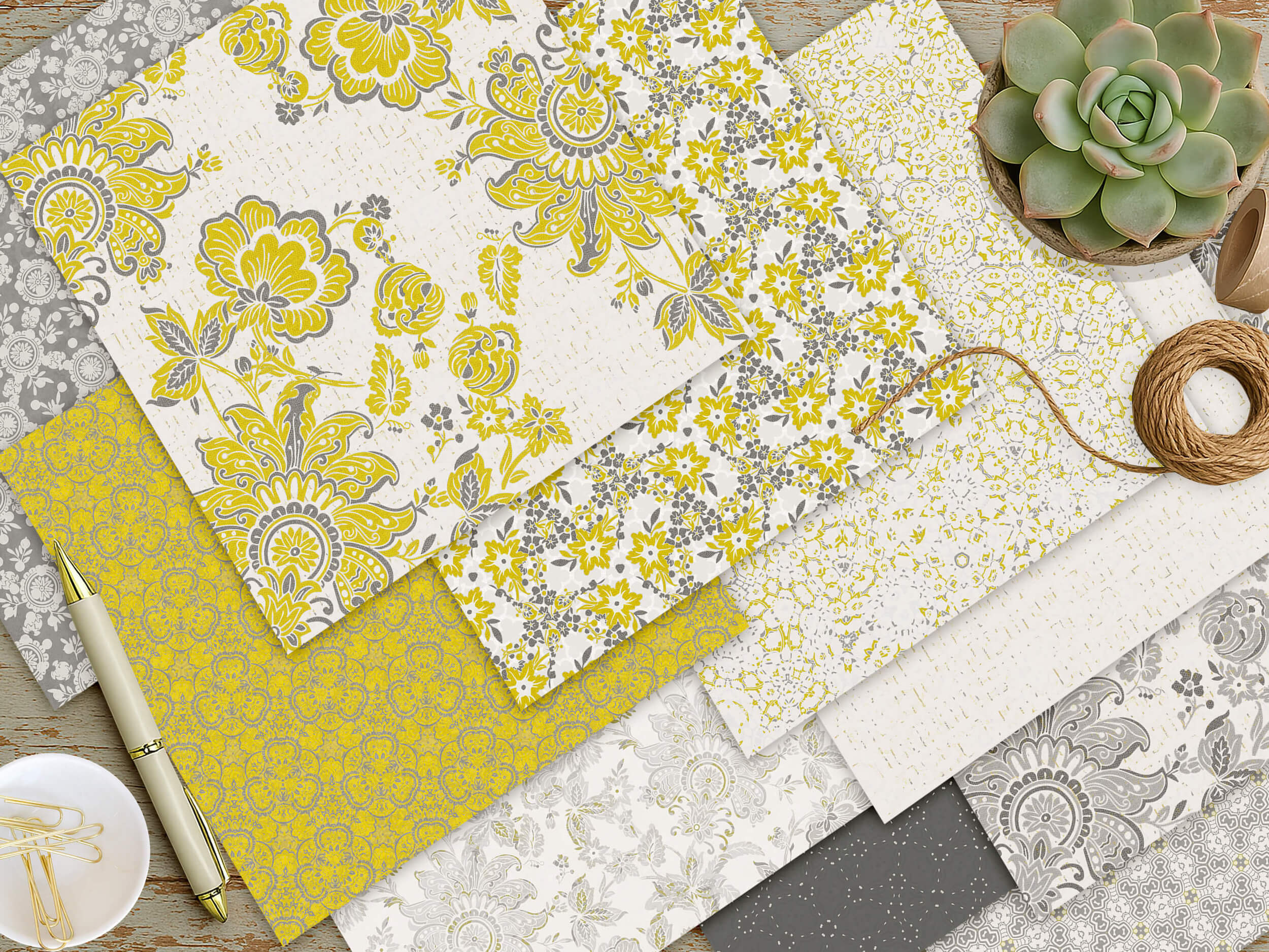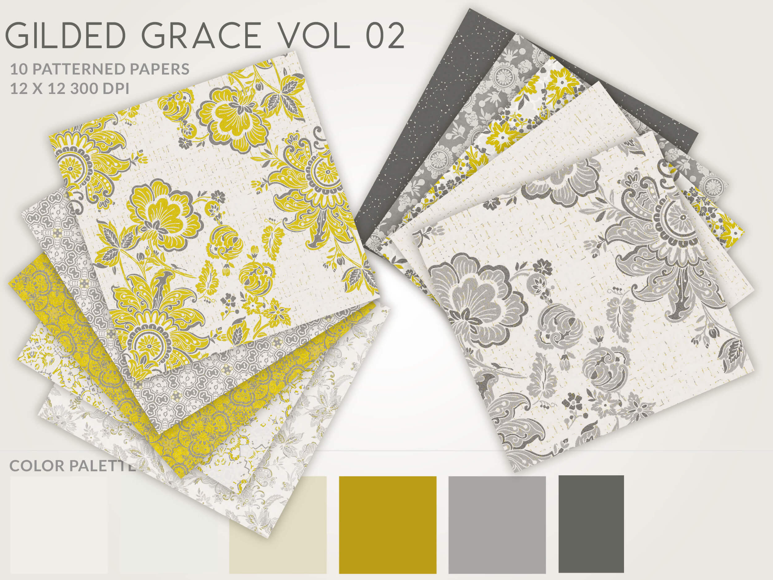 Whether you’re crafting wedding invitations, designing scrapbooks, or adding flair to planner spreads, these versatile backgrounds offer endless inspiration for artistic expression. The harmonious fusion of  yellow gold and soft grays brings an inviting pop of color—sophisticated florals, intricate geometrics unite for effortless chic.
