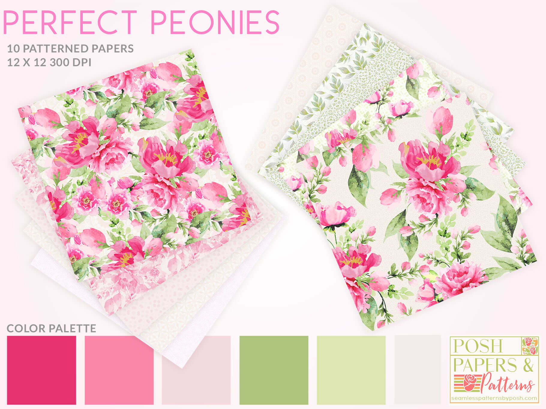 Pink Floral Printable Scrapbook Papers Vol 5—a curated collection of 10 beautifully crafted digital backgrounds designed for modern makers and creative professionals. This paper pack features lush watercolor peonies, vibrant greenery, chic polka dots, and elegant script accents, all set against a sophisticated palette of blush pinks, lively greens, and subtle backgrounds with intricate patterns.