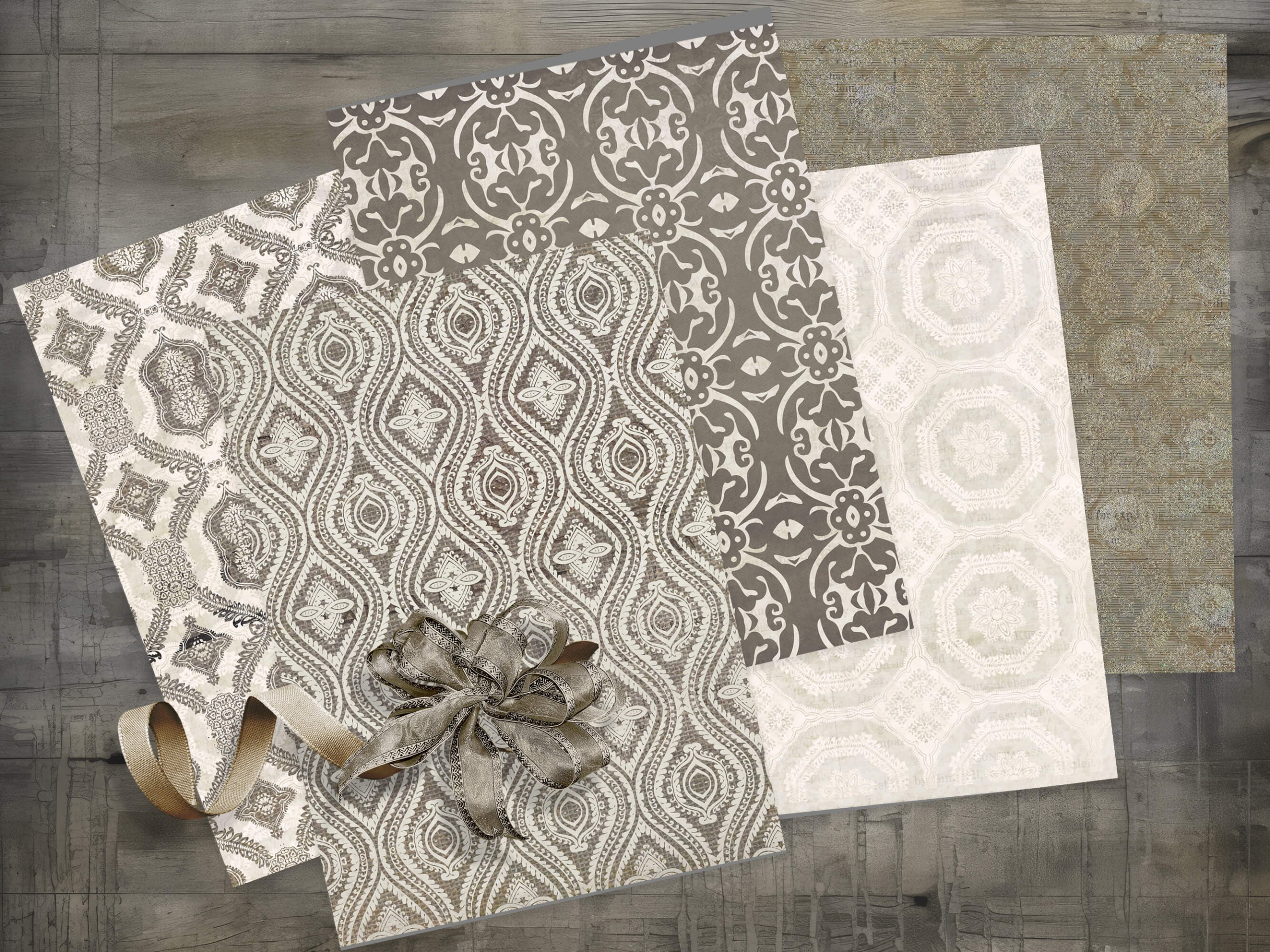 Bring timeless elegance and nostalgic charm to your creative projects. Vintage Vibes Vol 4 Printable Scrapbook Paper Set features sophisticated shabby chic and antique designs, this digital collection features beautifully distressed textures, script accents, and ornate damask patterns in a harmonious neutral palette.